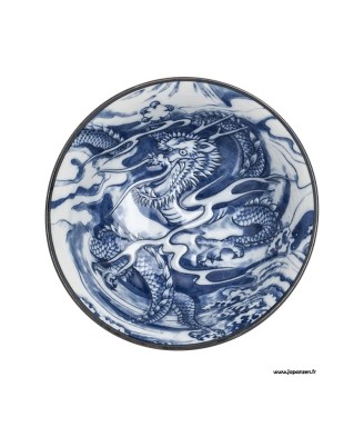 Un bol à ramen en porcelaine, ornée d'un magnifique dragon japonais "ryu", et du Mont Fuji-San