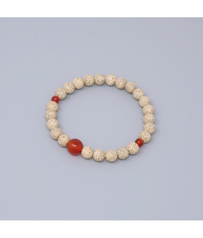 Les perles secondaires en agate complètent le bracelet. Cette pierre est utilisée depuis l’Antiquité et fait partie des sept trésors du bouddhisme.
